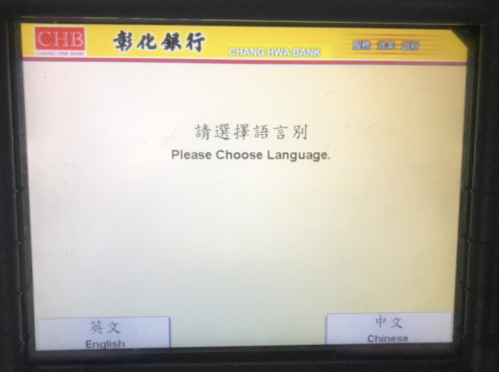 (私が使ったこのATMは英語、中国語どちらを選んでも両方の言語が画面に表示されました。)