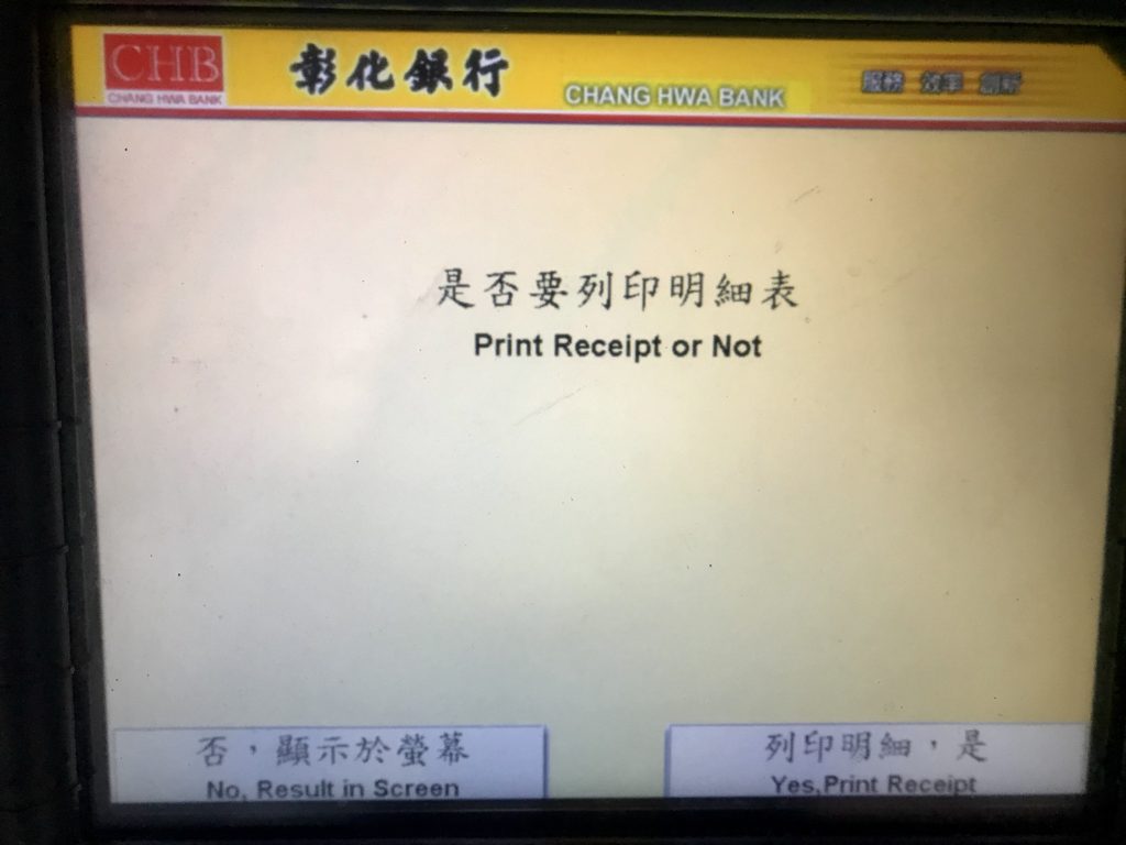 ちなみに最低引き出し額は1000台湾ドル(約3500円)です。