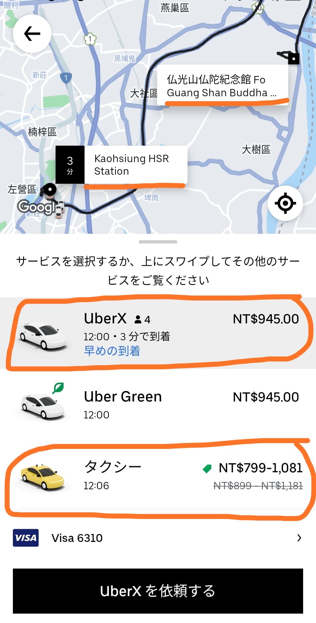 タクシーやウーバー(Uber)を使ったらいくらで行けるか調べたので参考にしてみてください。