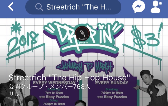 ストリートダンス練習会のfacebookページ